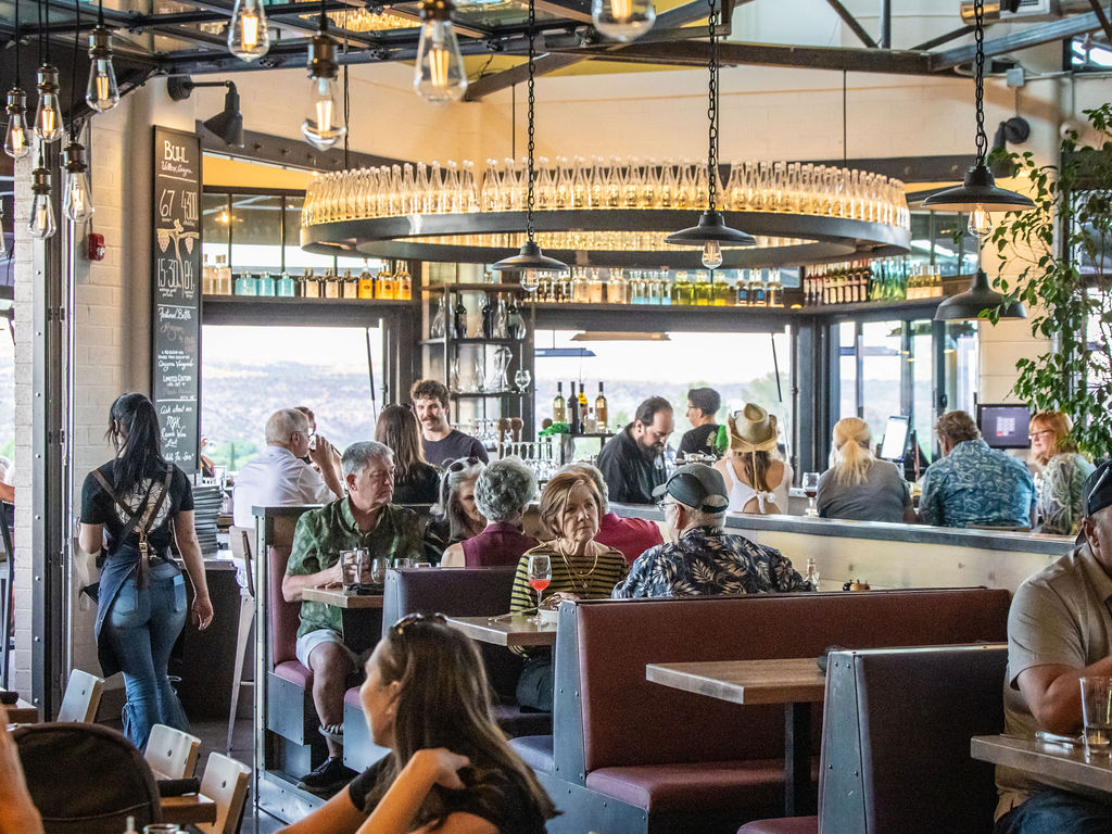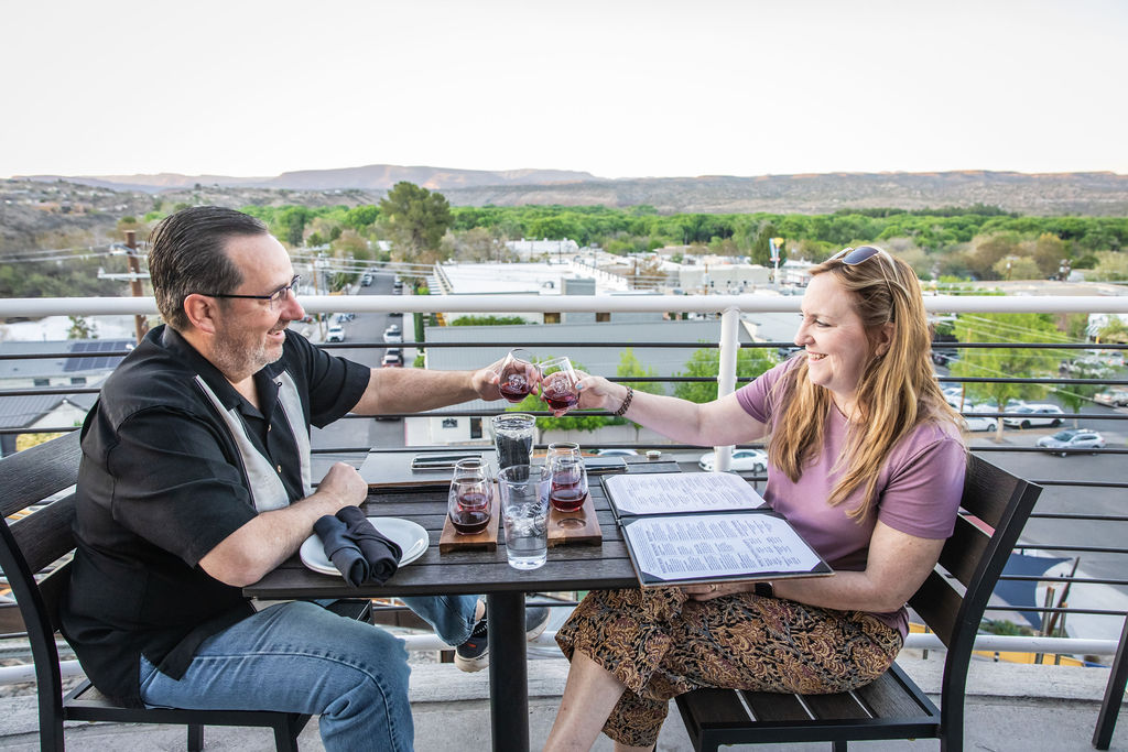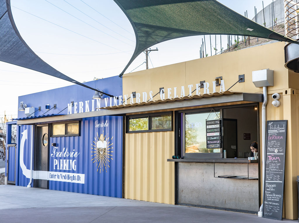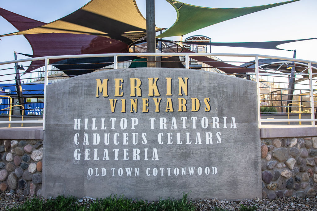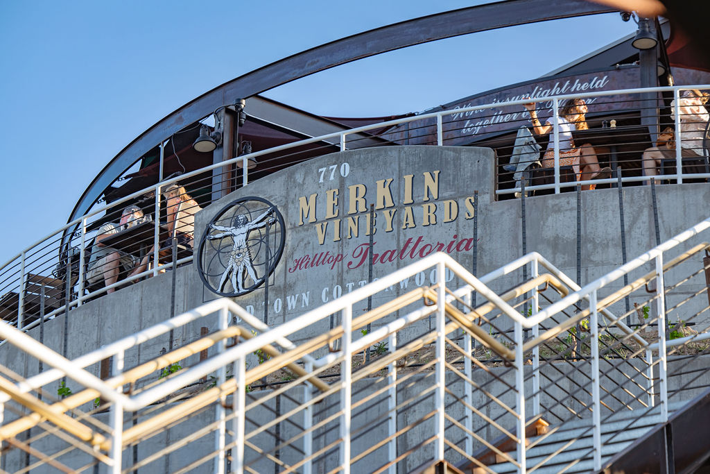 Nestled beside its 9,500-square-foot, state-of-the-art production facility and surrounded by 4.5 acres of estate vineyards, Merkin Vineyards Hilltop Winery & Trattoria, perched above Old Town Cottonwood, is an awe-inspiring sight. Guests can drive up to the parking lot or take the tram, which honors Cottonwood’s rich copper mining history.